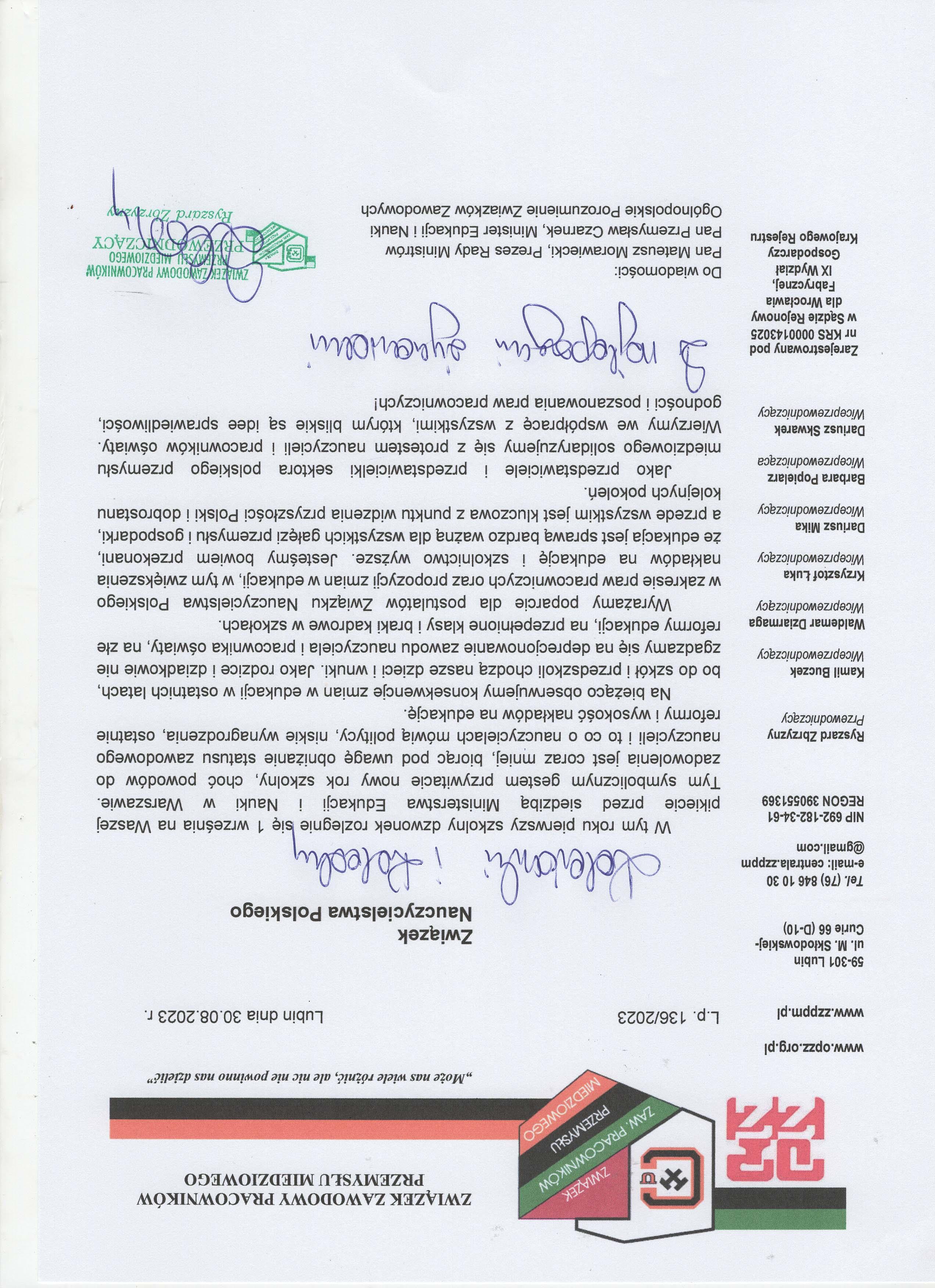 - Związek Zawodowy Pracowników Przemysłu Miedziowego (treść Listu poparcia TUTAJ)